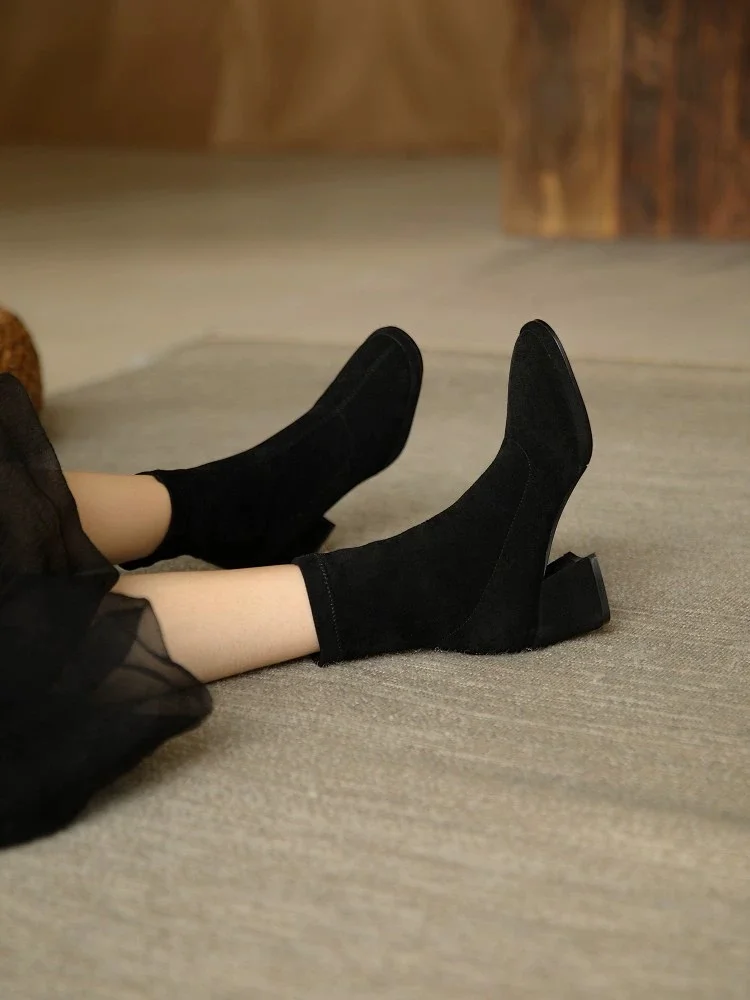 2025 New Women's British Style Pointed Ankle Boots - Chunky Heel Booties, Versatile Fall/Winter Office Boots