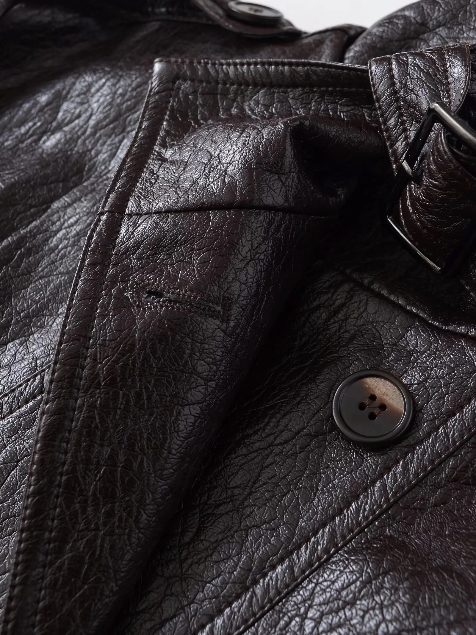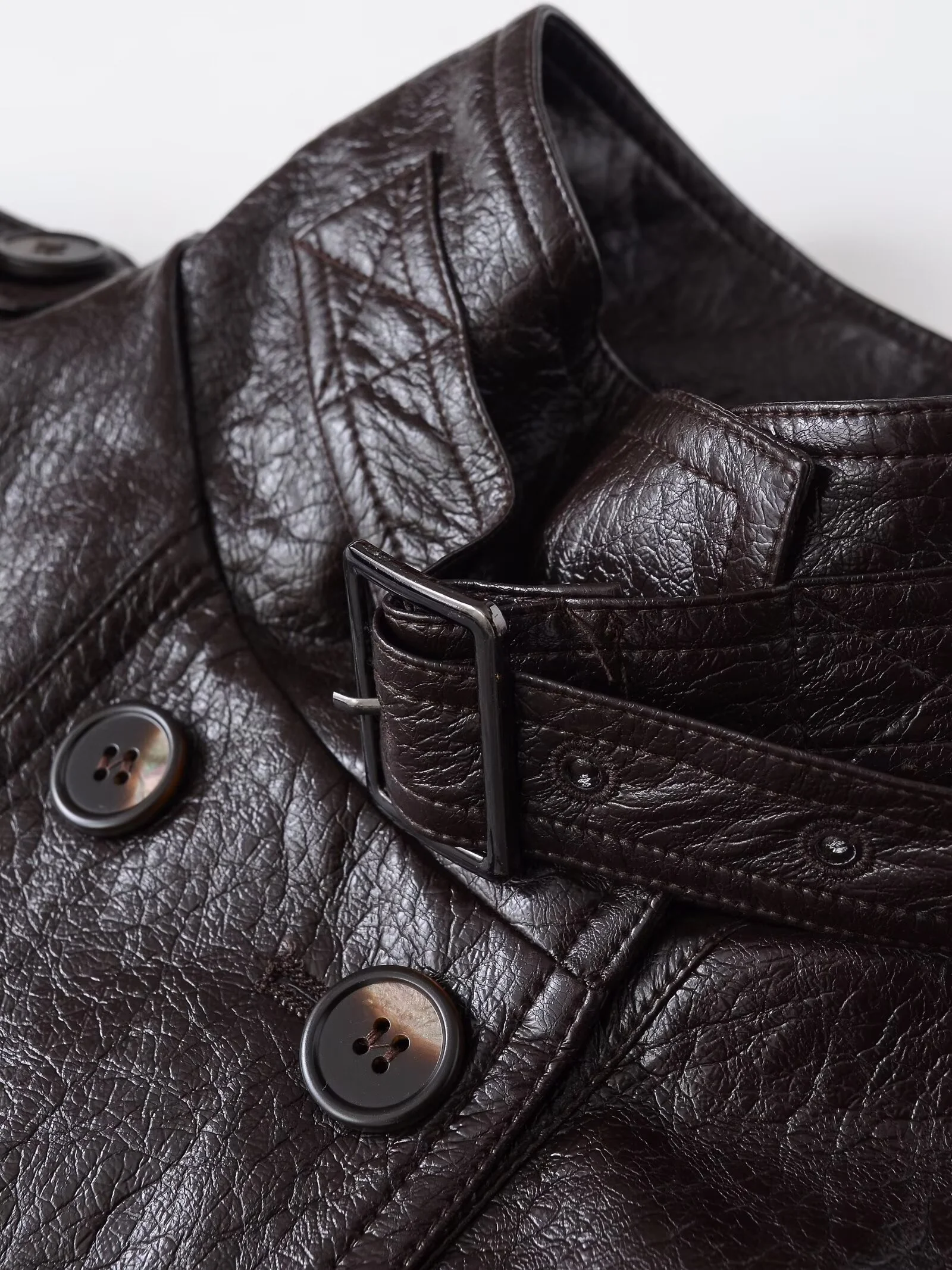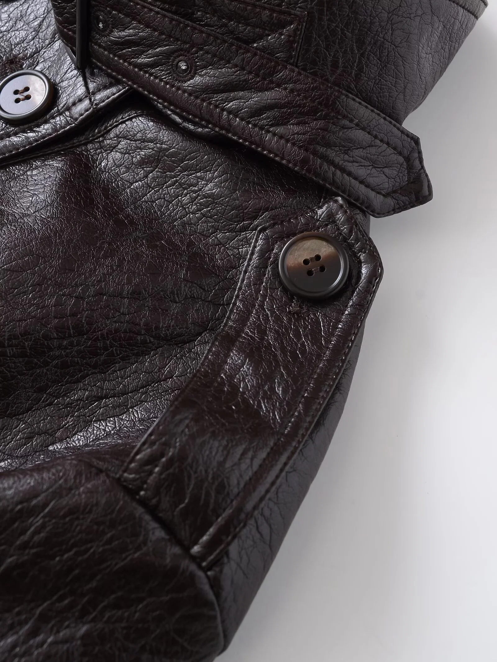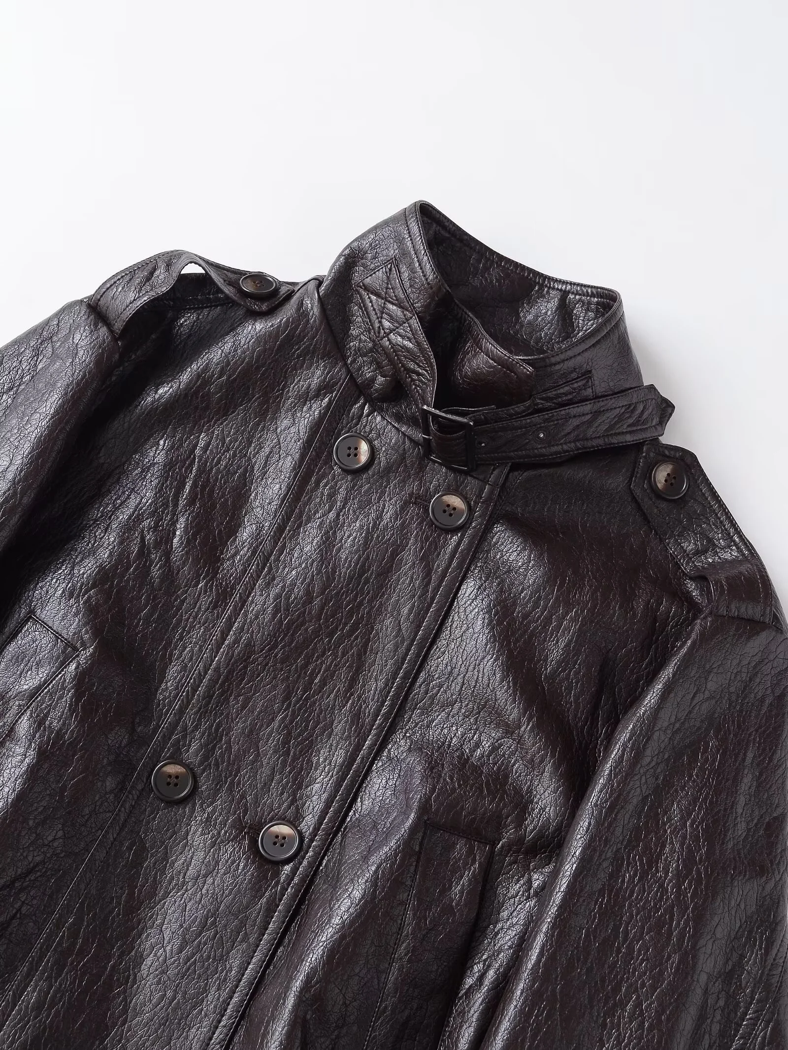 2025 Winter New Women's Casual Fashionable Simple Stand Collar Long Sleeve Leather Button Double-Breasted Loose Short Jacket