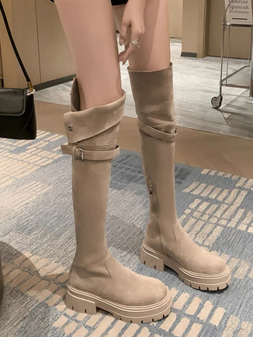 2025 Women's Wide Calf Over The Knee Boots Stretch Riding Boots Flat Foldable Two-Way Wear Suede Long Boots for Thick Thighs