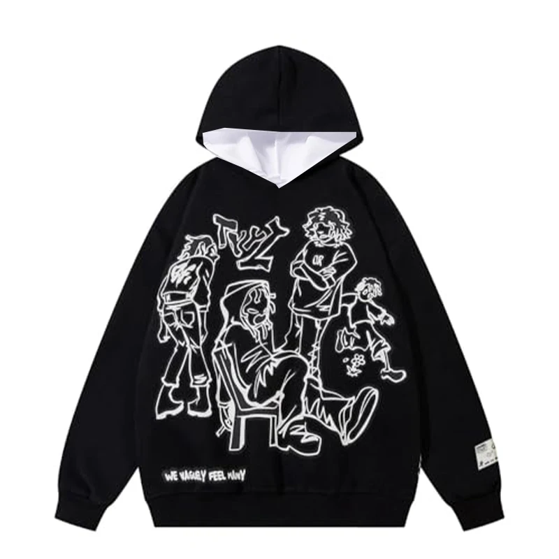 Autumn and winter new American retro print black hoodie fashion sweatshirt pullover youth adult trendy street hooded sweatshirt