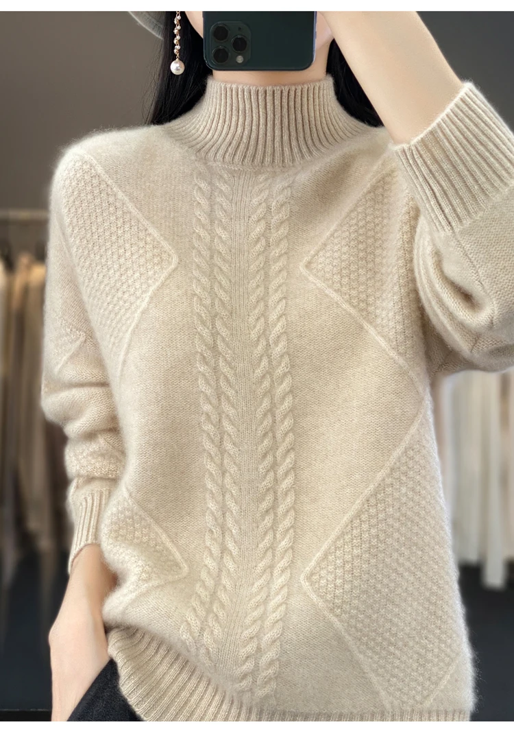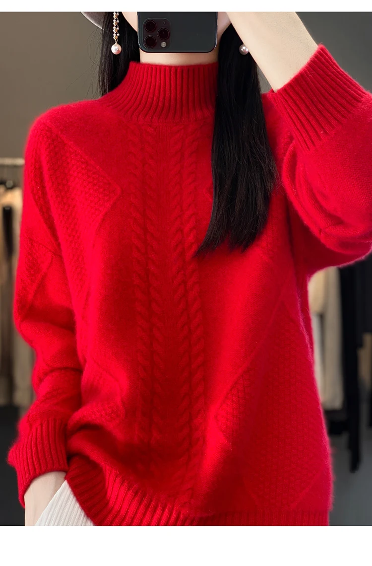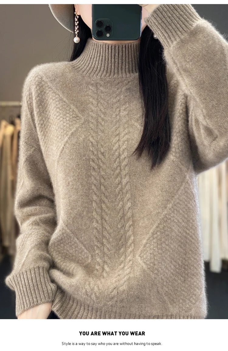 *Features: Fine 12-gauge fabric, Medium thickness. Normal fit, long sleeve turtleneck design. Lightweight, Warm and soft. This turtleneck pure merino wool sweater is suitable for fall and winter.