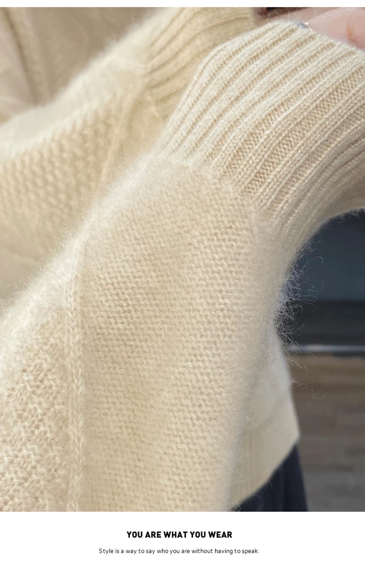 The sweater is made of a single thread, without any joints, it is very soft, comfortable, and high-end.