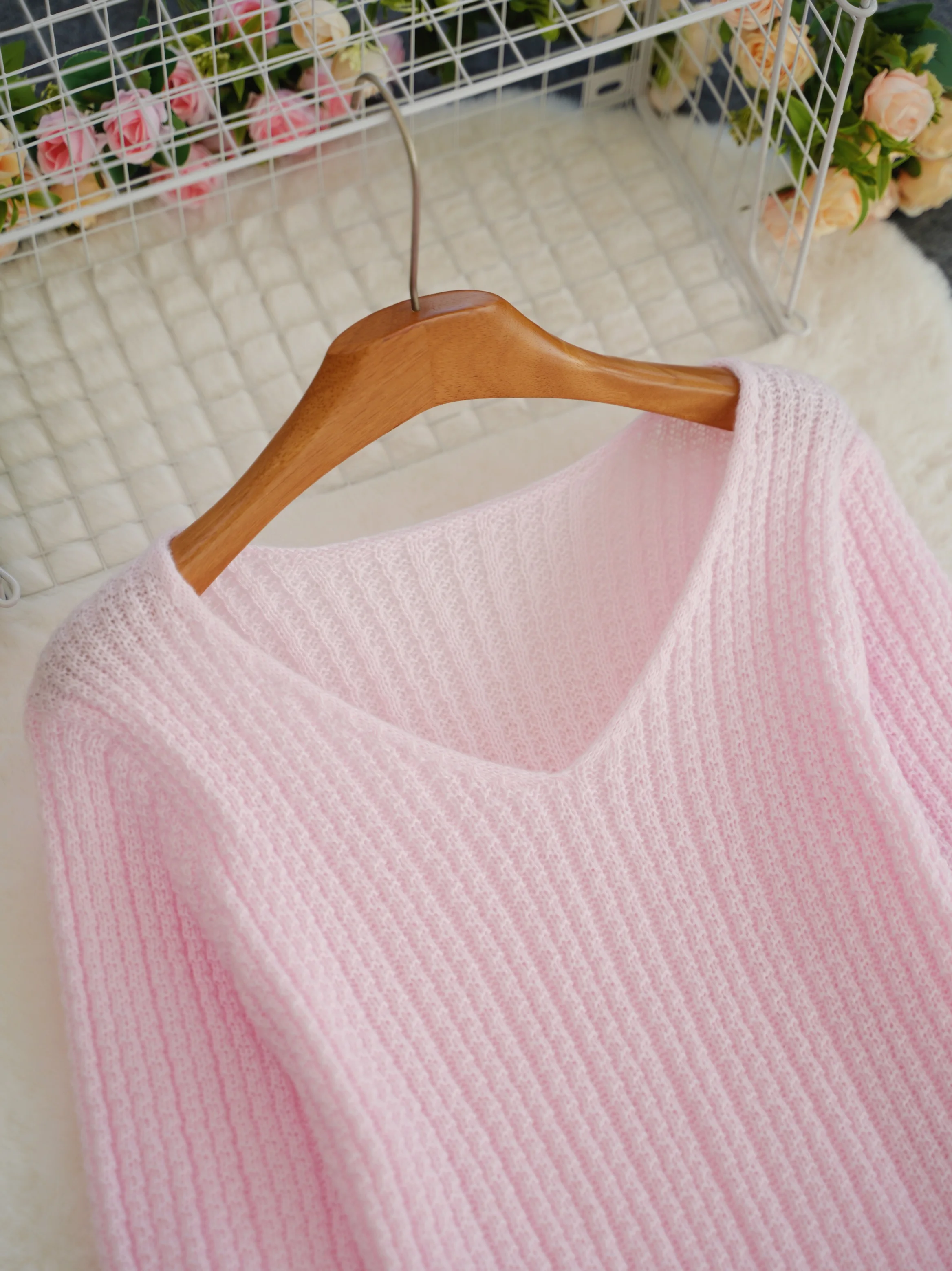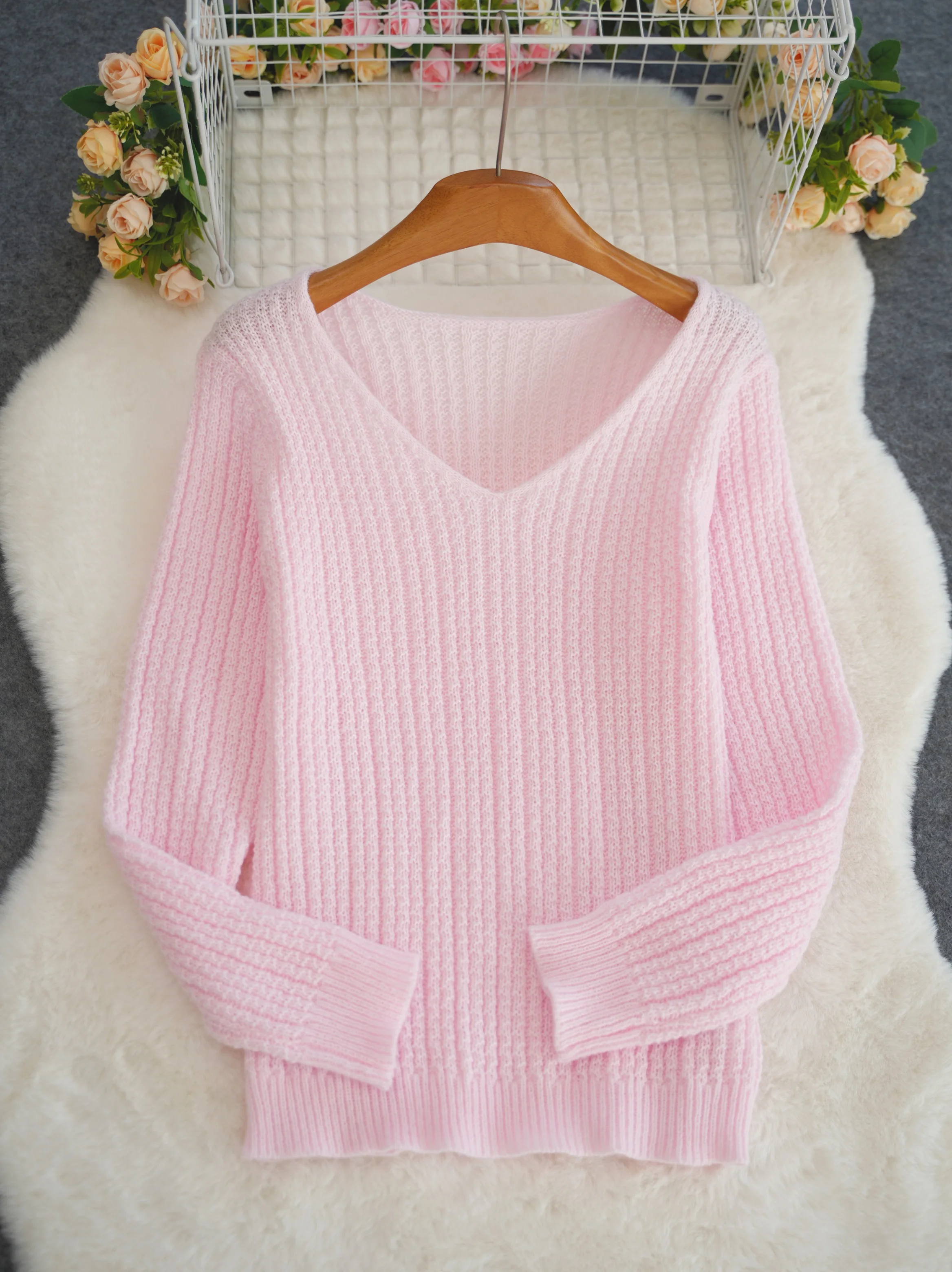 Classic Stripe V-Neck Pullover Long Sleeve Sweater Fashion Women's Tops Hot Woolen Soft Knit Long Sleeve Beautiful Ladies Sweate