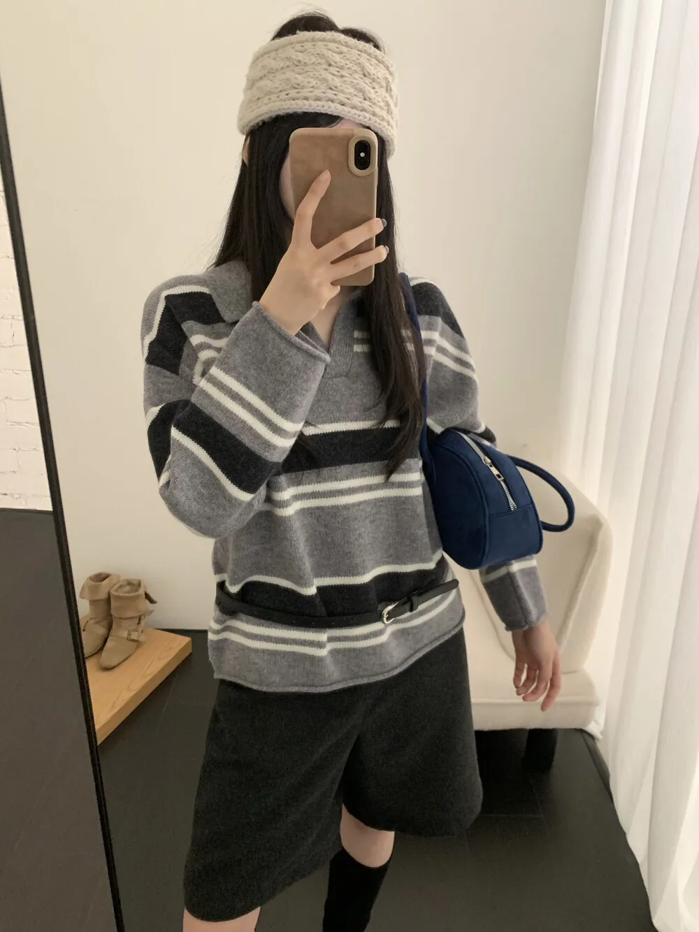 High-Quality Cashmere Knitted Sweater Comfortable Soft Woolen Striped Collared Korean Style Long Sleeve Mid-Thick Adult Women...
