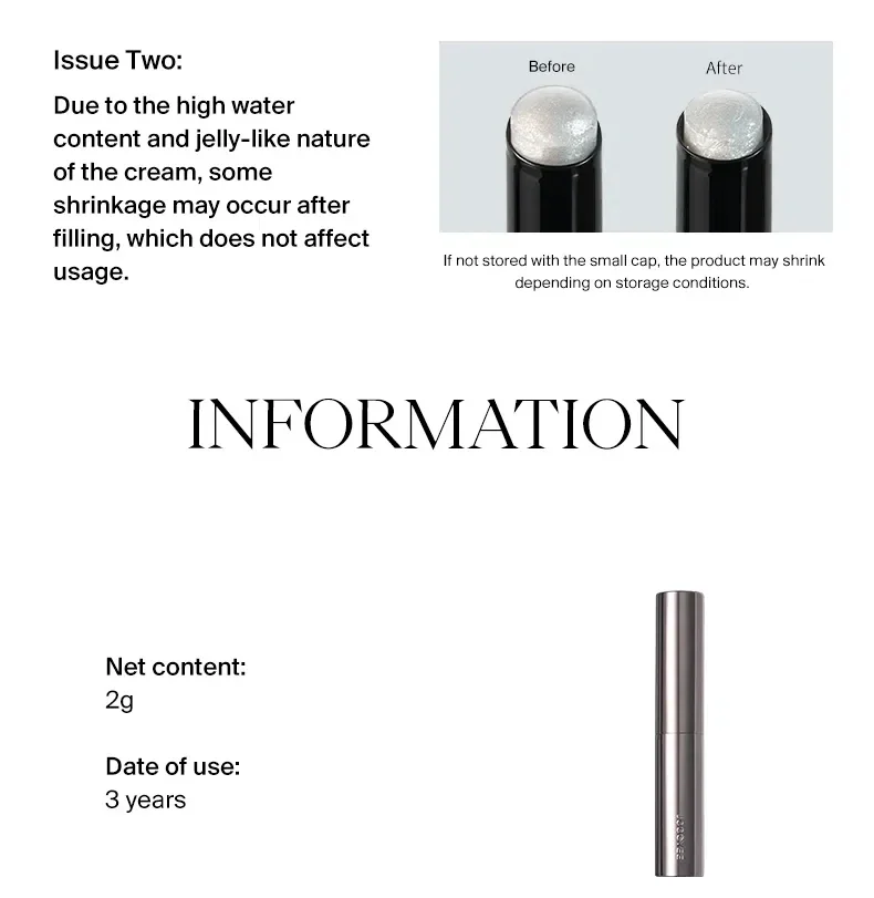 JOOCYEE Jelly Highlighter Stick Long-wearing Weightless feel on the skin Long-lasting Waterproof Champagne Cosmetics Face Makeup