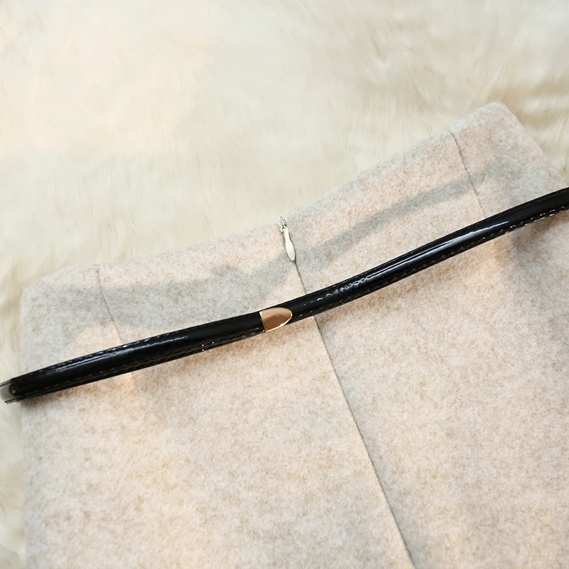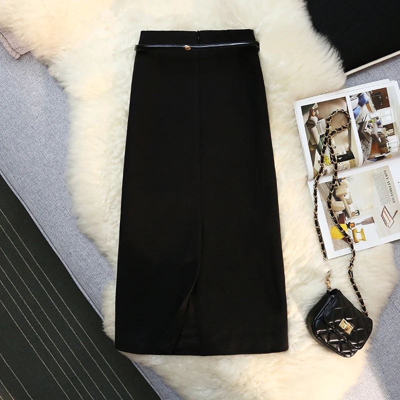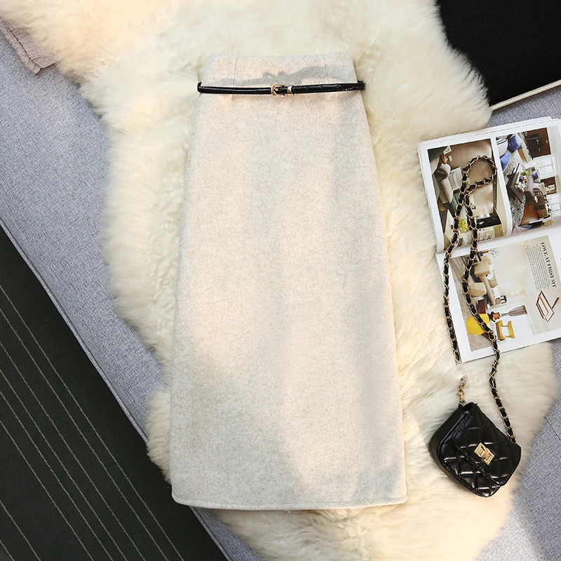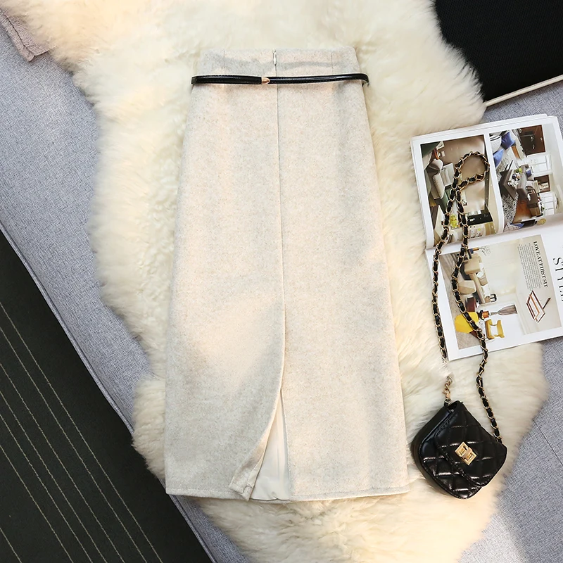 Seoulish 2024 New Autumn Winter Wrapped Woolen Midi Skirts for Women Fashion High Waist Solid Color Office Lady Straight Skirts